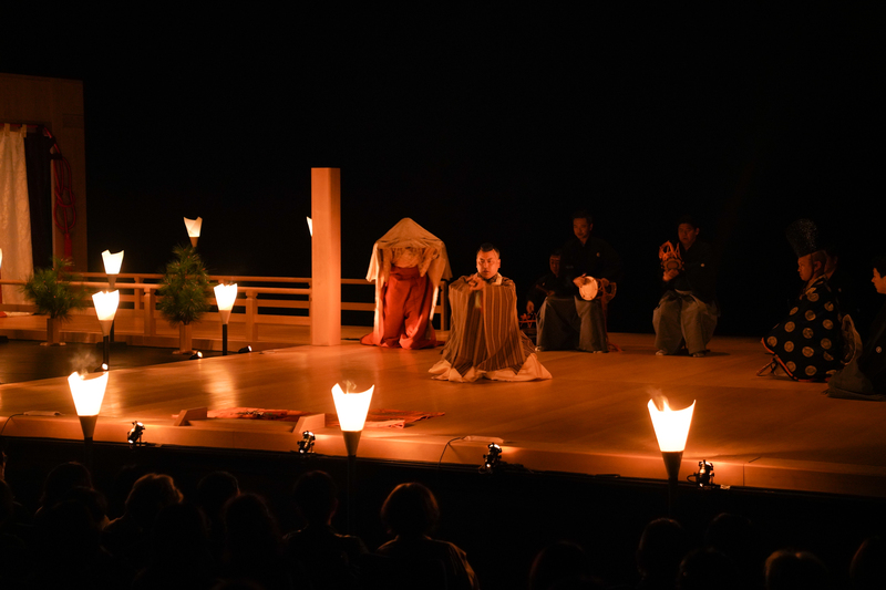 〈木ノ下〉4月に明るさの実験をしたんですが、「もうちょっと落としましょうよ」「いやいやいや」って二人でせめぎ合い。終演後「もっと明るくしてくれたらいいのに」って声も聞こえましたが、ごめんなさい。ギリギリまで照明を落とした効果はあったと思っています。声に囃子に足拍子、後半は長袴なので衣擦れの音…能ってこんなにもいろんな音がしてるんですね。