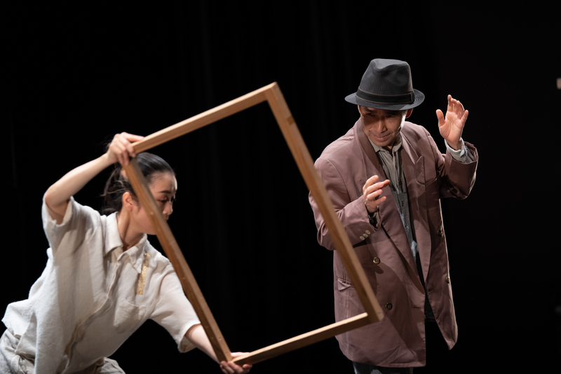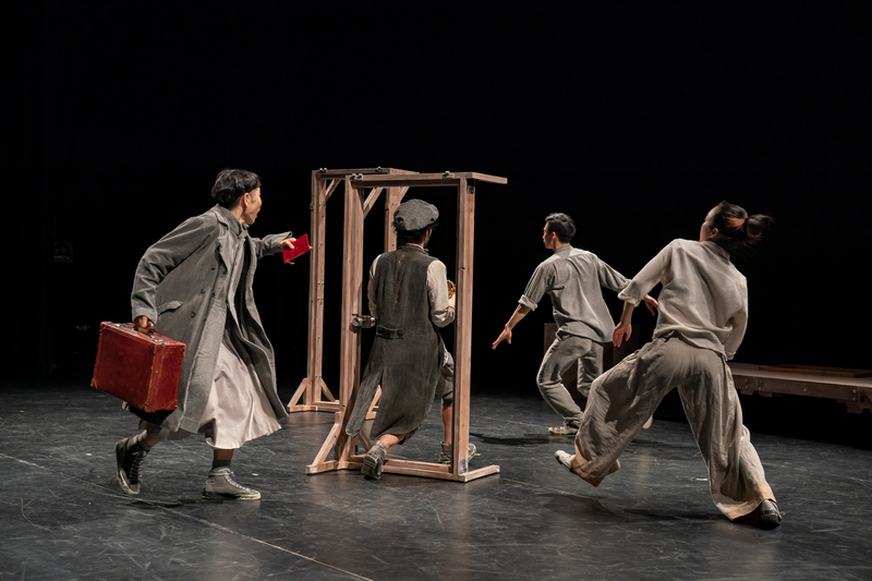 演者は5名で、シンプルな服装に身を包み、場面によっては1人から5人までが登場し、役割を自在に切り替えます。新聞紙が風を起こし、身体の動きと重なる場面や、帽子とジャケットが演者の動きに連動する場面では、視線が釘付けになります。静と動の切り替えが巧みで、緊張と笑いが交互に訪れます。